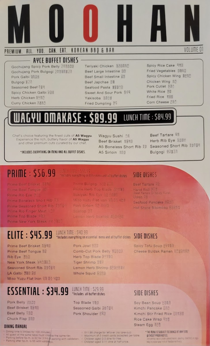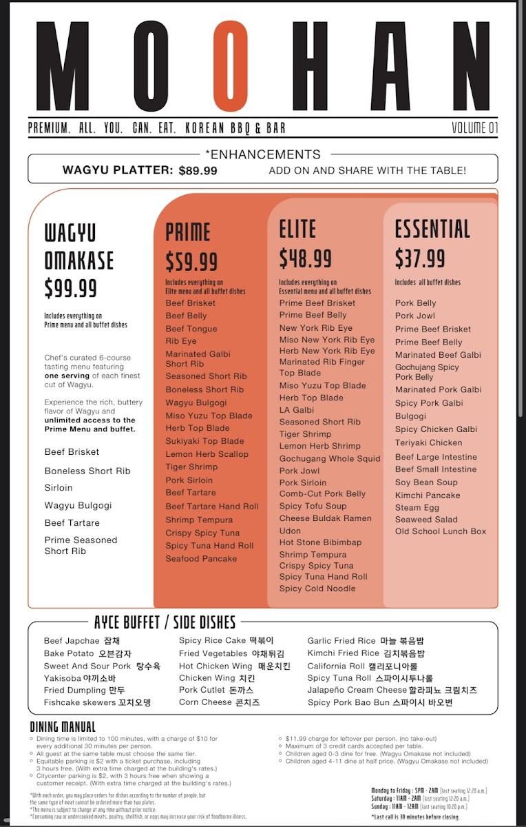 Moohan Korean Bbq Menu
